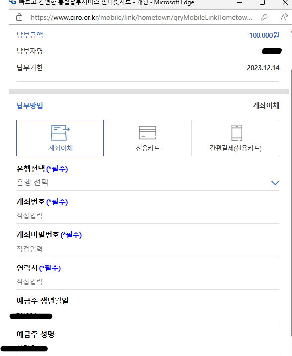 5. 기부금 납부하기!! 를 누르면. 아래와 같이 나옵니다.