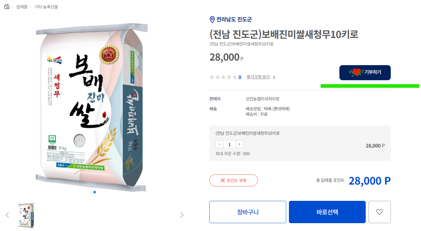 쌀 10킬로가 대부분 3만 포인트였는데. 진도 쌀은 28000원 이었어요.