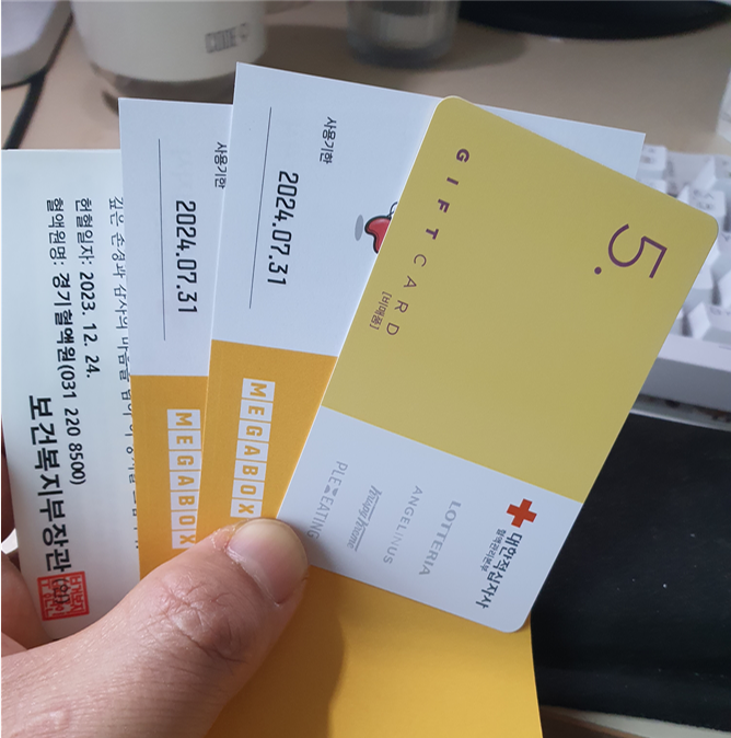저는 혈소판 다종 헌혈자라, 메가박스 영화관람권 두장을 받았는데.